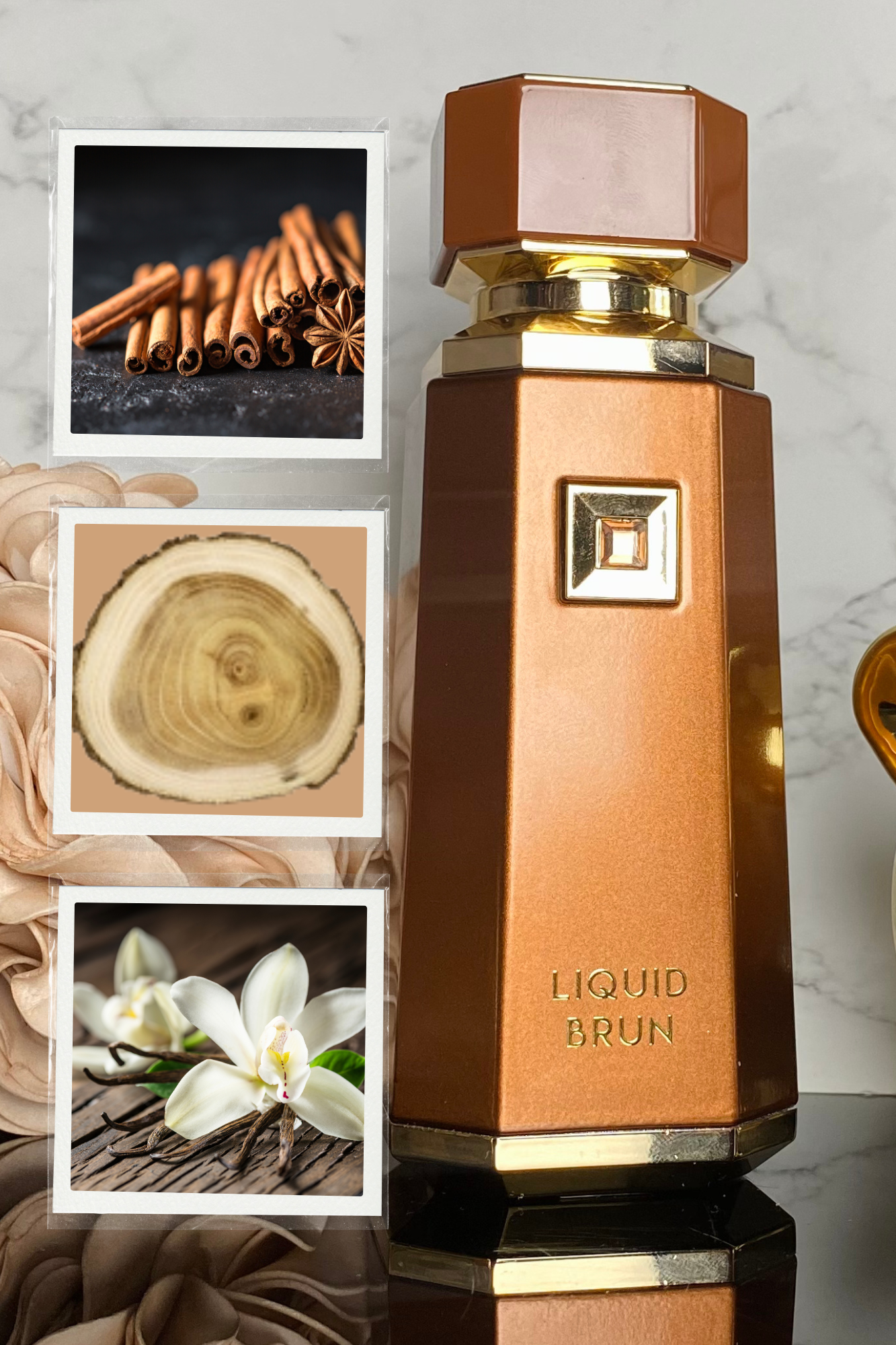 Liquid Brun łączy w sobie ciepło przypraw i słodycz wanilii z lekko drzewnym wykończeniem 🌰 Idealny na chłodniejsze dni, kiedy szukasz zapachu z klasą, ale bez nadęcia. Pachnie jak luksus – bez konieczności sprawdzania konta bankowego po zakupie 😎